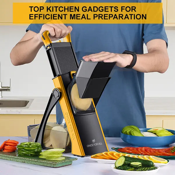 Experience the difference with an all-in-one tool that cuts prep time in half. Unlike standard cutters, ours offers adjustable thickness and multiple shapes in one safe, easy-to-clean design for effortless cooking.